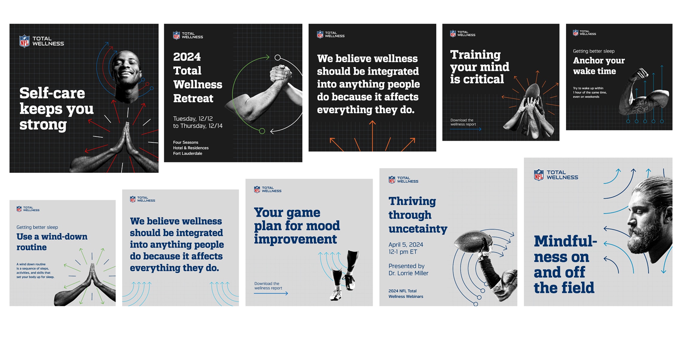 NFL Total Wellness is a vital initiative dedicated to supporting the mental and physical well-being of players by connecting with them directly as well as through their coaches and clinicians. As conversations about mental health and wellness gain momentum in professional sports, there is a need to refine and enhance the program’s materials to better engage key audiences, encourage dialogue, and enhance impact.